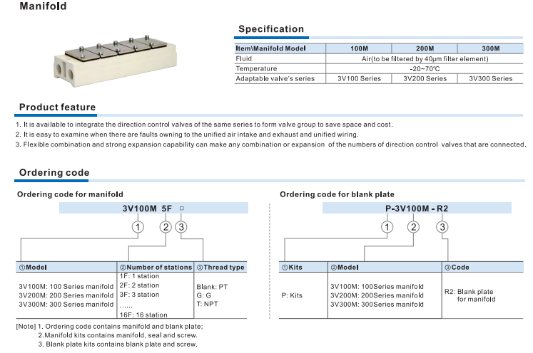 การเลือกรุ่นผลิตภัณฑ์ Manifold For Valve Airtac 3V and Airtac 3A